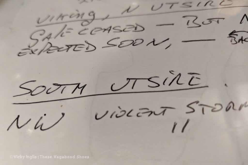 As the crow flies, we’re less than 15 nautical miles from the island of Utsira, imagined remote and stormbound yet so familiar from the Shipping Forecast, that regular incantation that masters the weather for mariners. Violent storm 11 is every bit as terrifying as it sounds. We’ll be staying here in the harbour for some time.