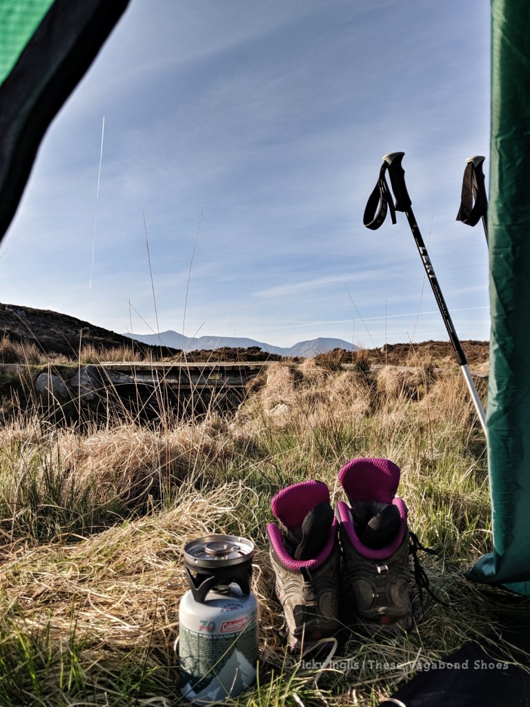 Though May is the springtime and days are long, there’s still potential for cold nights, and I woke to frost on the outside of the tent on a couple of occasions. Then after a week of fine weather, conditions changed to days of relentless rain and a cold that seeped into my bones. The ability to make hot food and drinks was as much about keeping up morale as fuelling my body.