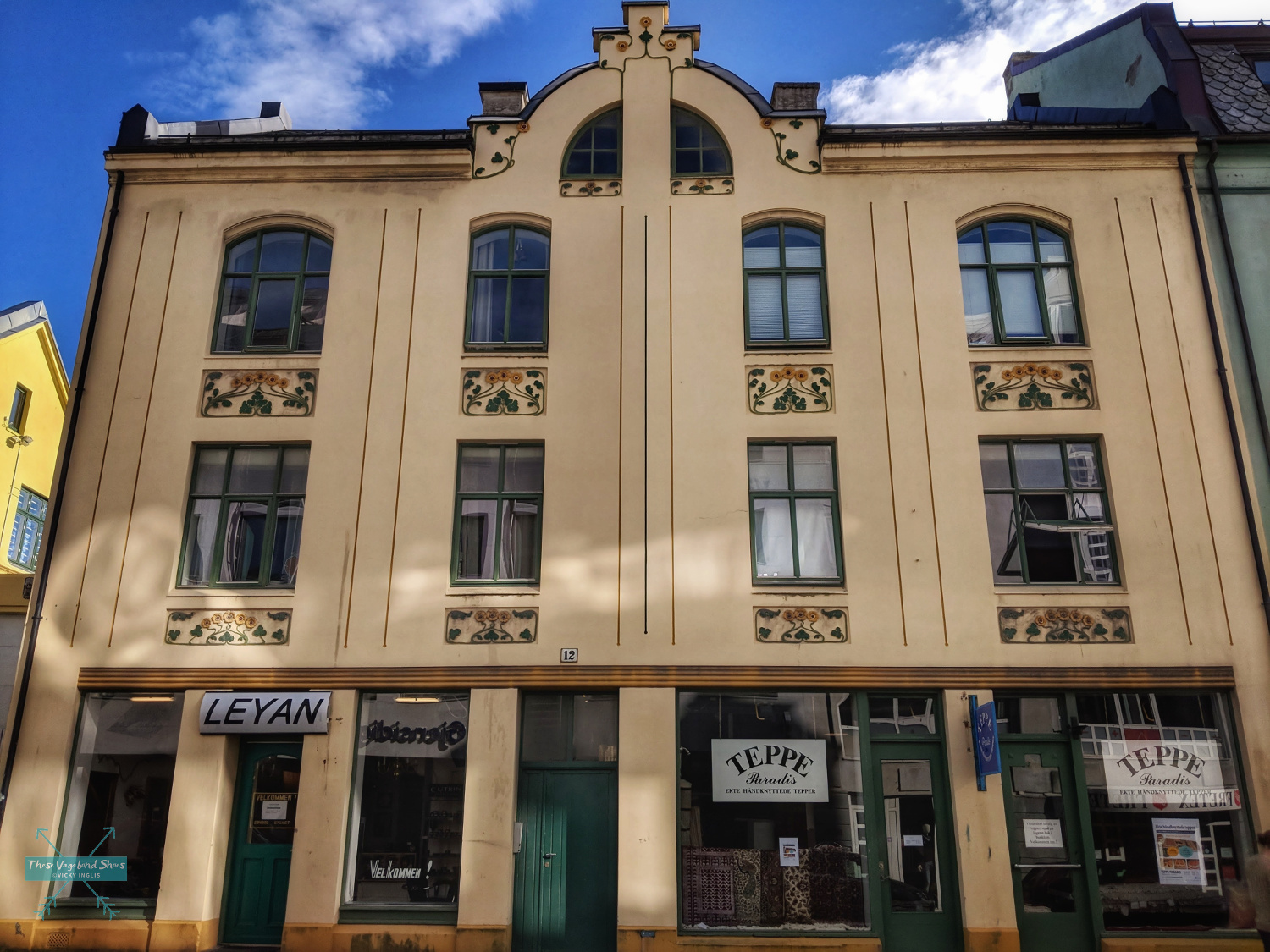 Just over the road from Hellebroa is the old Swan Pharmacy building at Apotekergata 16, the highlight of Ålesund’s Art Nouveau offering. The beautiful interior of the shop was preserved while it continued to operate, along with that of the private residence on the upper floors, and after the business closed in 2001, it was redeveloped into the Art Nouveau Centre (Jugendstilsenteret).