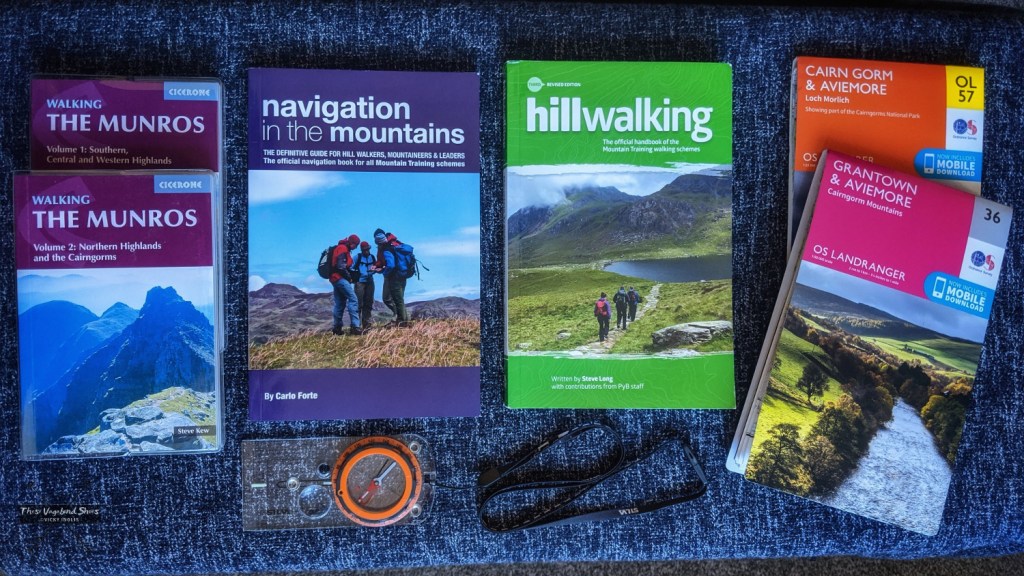 There’s plenty of kit you could buy before doing the training course, but the most vital bits of equipment you’ll need will be a good compass, like the Silva Expedition 4-360, and the relevant maps for the area you’re in. I think it’s worth having copies of both common OS map scales, the 1:25,000 Explorer series (orange covers) and the 1:50,000 Landranger series (pink covers), and the Harvey’s mountain map for your preferred areas, to learn the differences and similarities in how they present information.