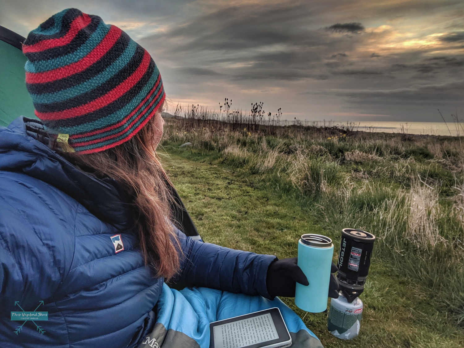 Waking up to a freshly brewed coffee on a winter camp by the coast