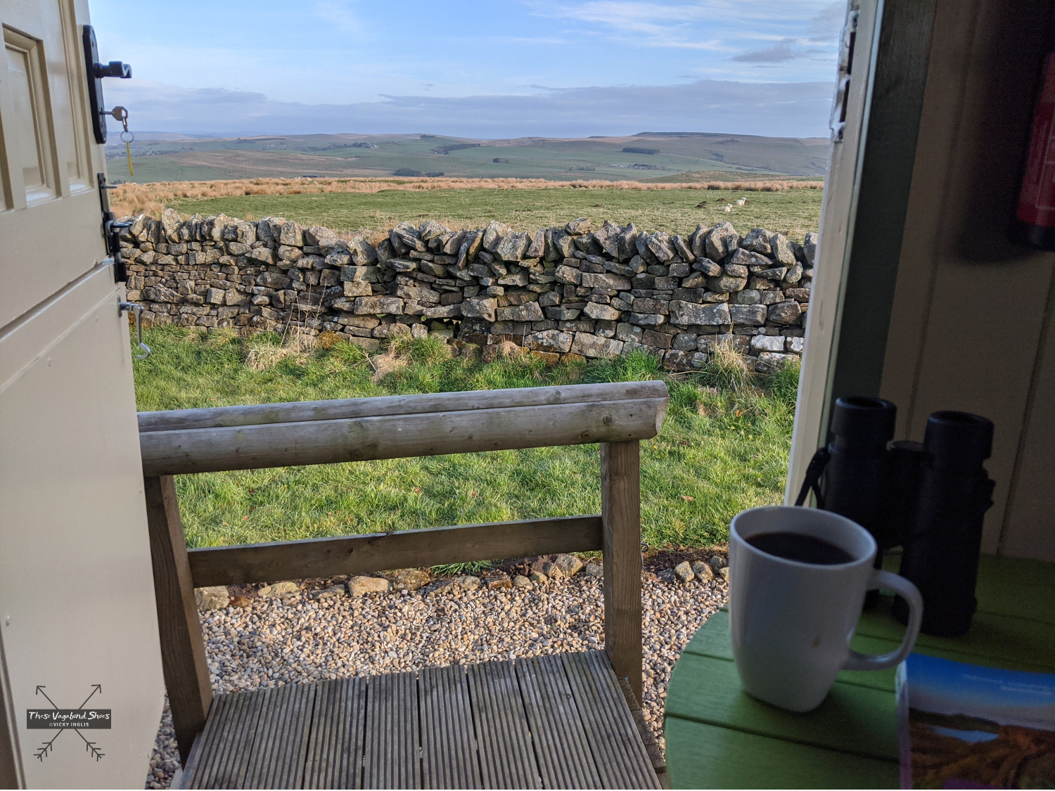 Coffee and birdwatching from a shepherd’s hut in Northumberland National Park