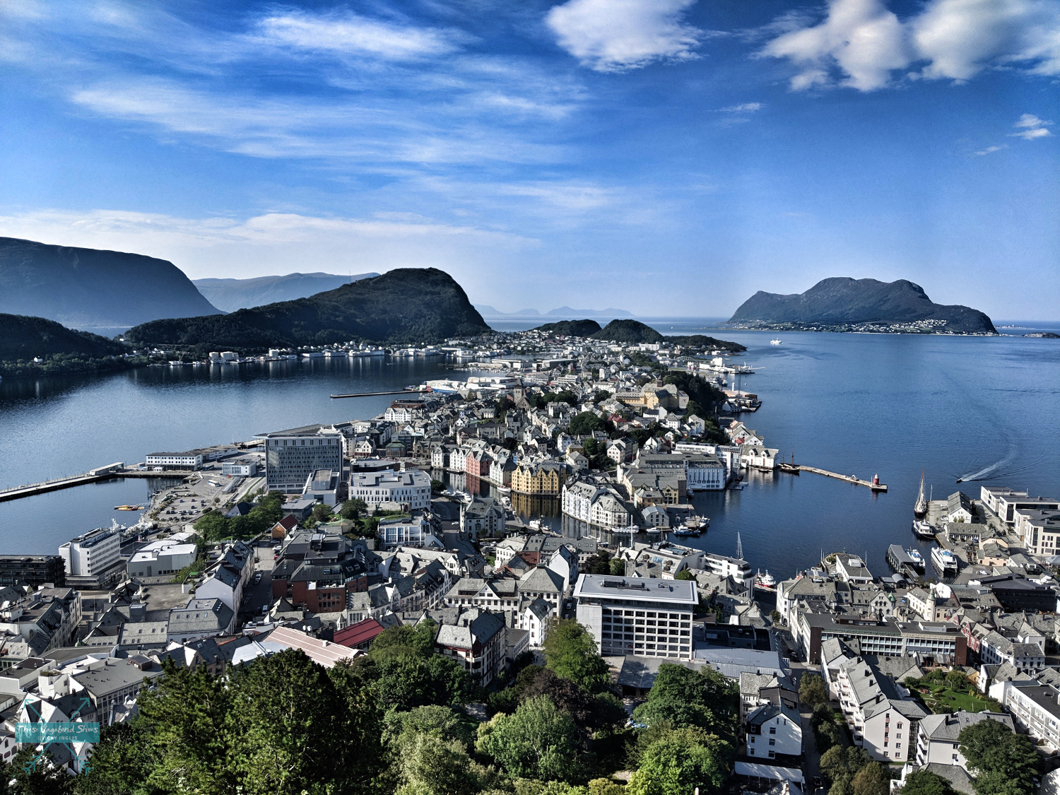 The port town of Ã…lesund is often considered to be the most beautiful in Norway, largely down to the distinctive Art Nouveau style of architecture of the buildings, set on a canvas of several small islands, against a backdrop of snow-capped mountains dropping sheer to the fjords below.